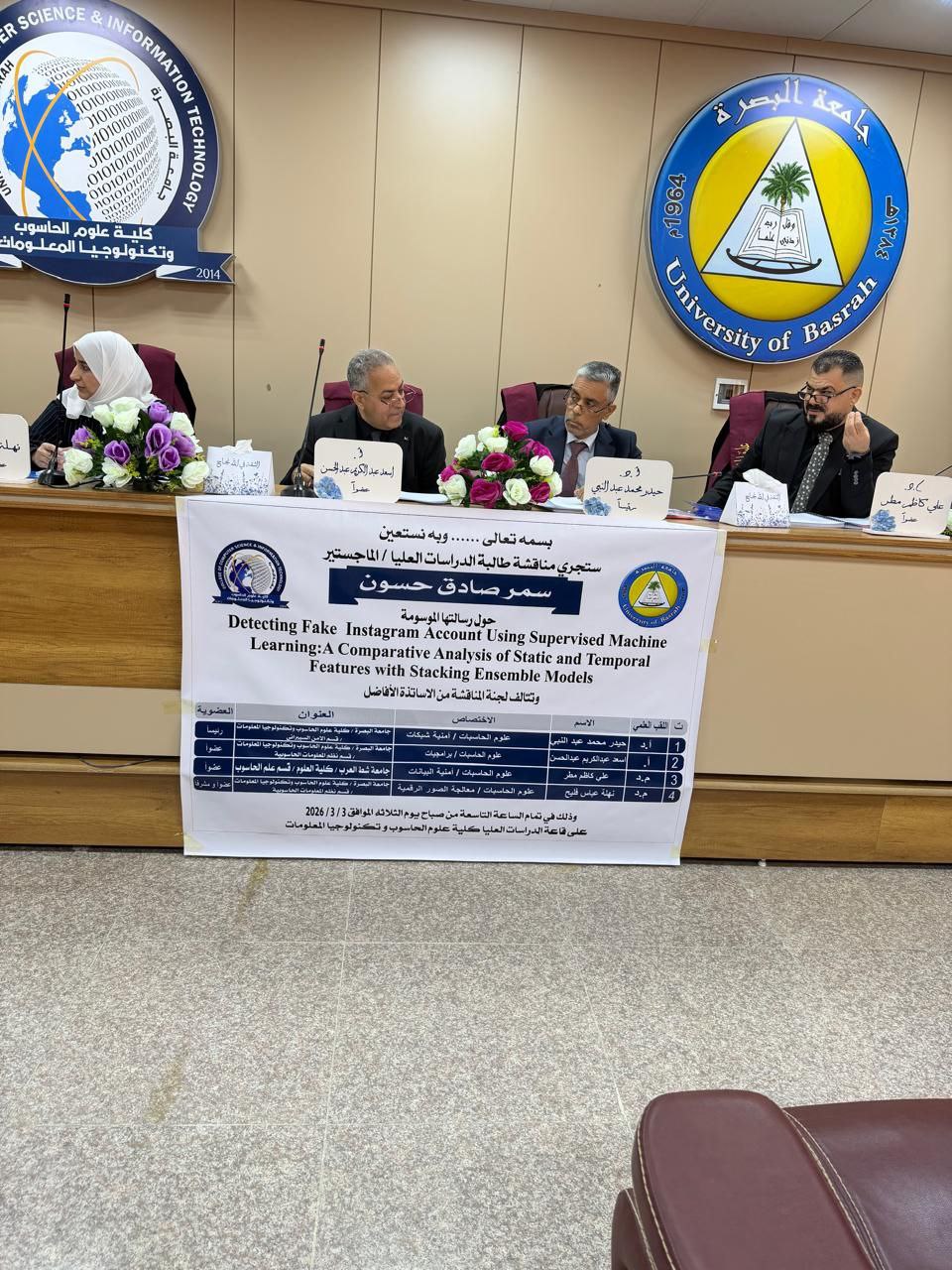 بحثت رسالة ماجستير في جامعة البصرة /كلية علوم الحاسوب وتكنولوجيا المعلومات بعنوان: