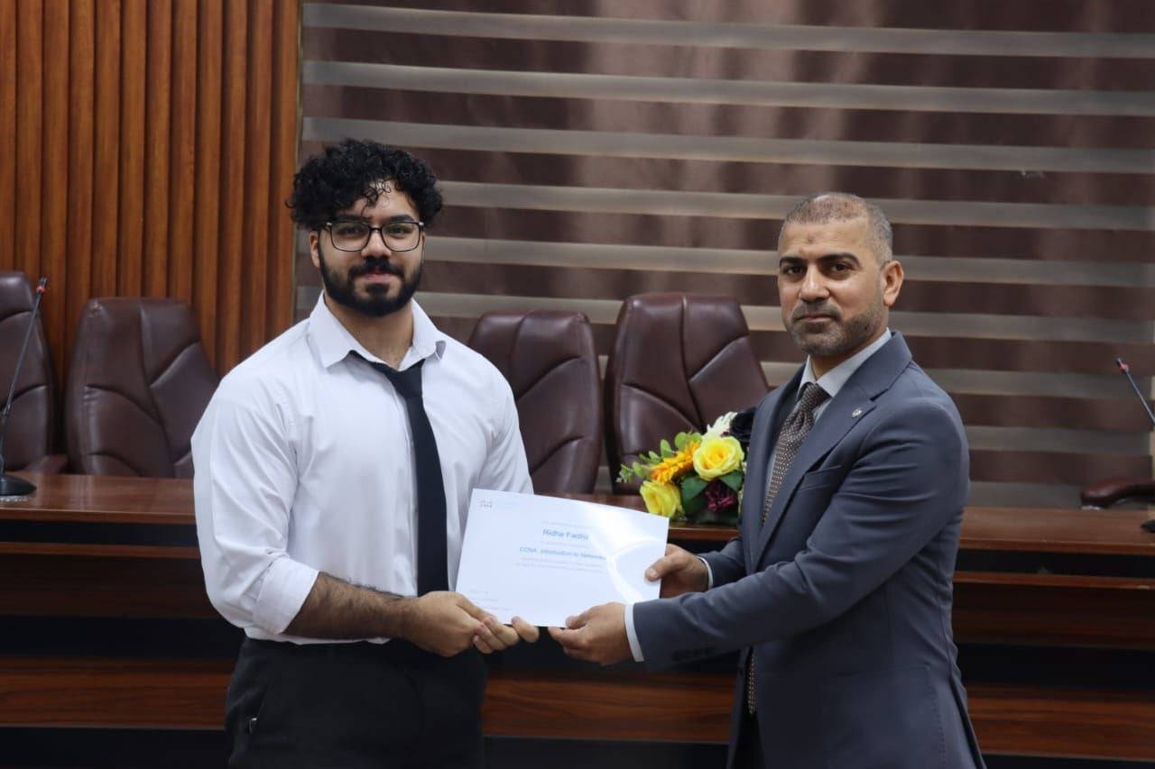 برعاية السيد عميد الكلية الأستاذ الدكتور هشام كاظم المحترم ، تم توزيع شهادات اجتياز دورة سيسكو العالمية (CCNA) على الطلبة المشاركين في الدورة التدريبية التي أُقيمت بالتعاون مع أكاديمية سيسكو العالمية، والتي استمرت خلال الفترة الماضية بهدف تطوير مهارات الطلبة في مجال شبكات الحاسوب وإعدادهم لسوق العمل التقني.